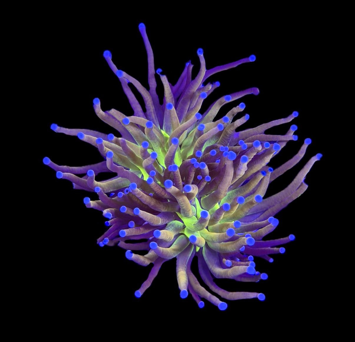 Amazing neon green center with perfect all gold stems! In higher lighting the gold will become brighter, while in lower lighting the gold may fade.