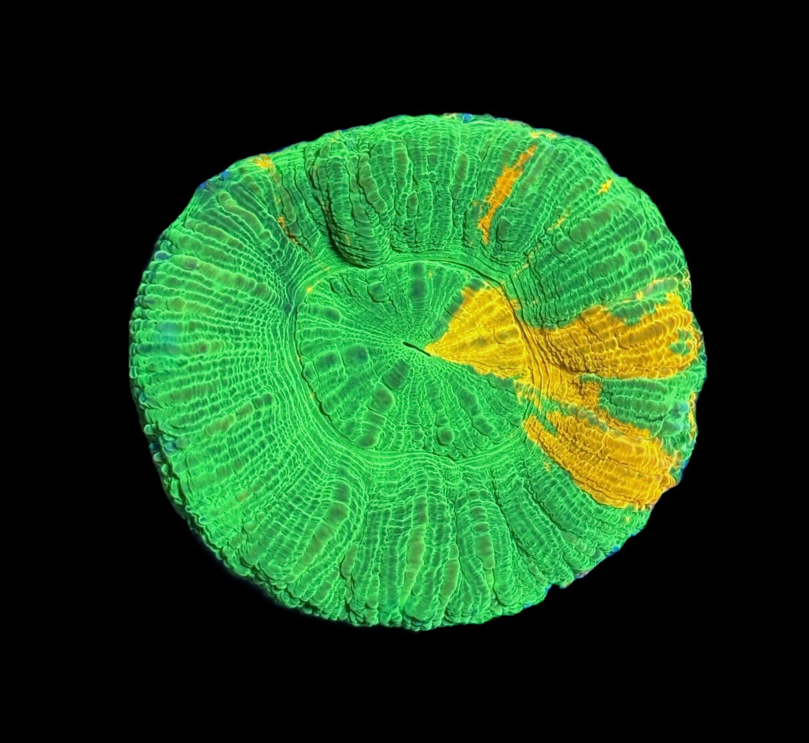 Nice! Unlike most bleeding apples where the colors are red and green, this crazy bright scoly has yellow/orange coloration. This coral will benefit from weekly feedings but is not required.