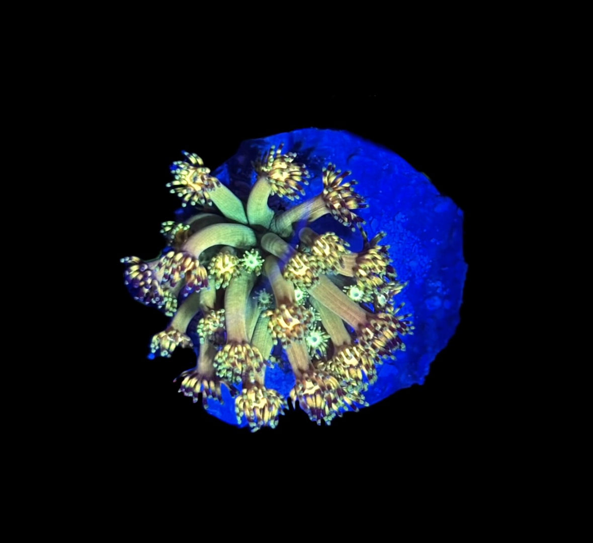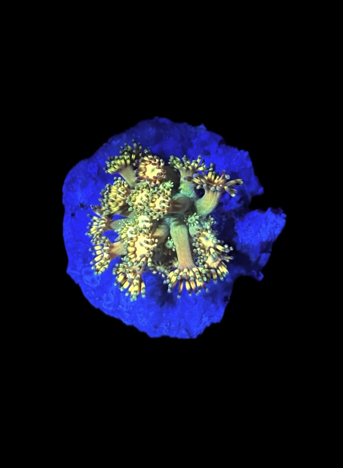 WOW! This goniopora grown right here at GHI Corals is one of the most unique and brightest strains of goniopora we carry! Because this goni is grown and fragged here at GHI Corals it is much more hardy than other options on the market and is truly a collectors piece!!