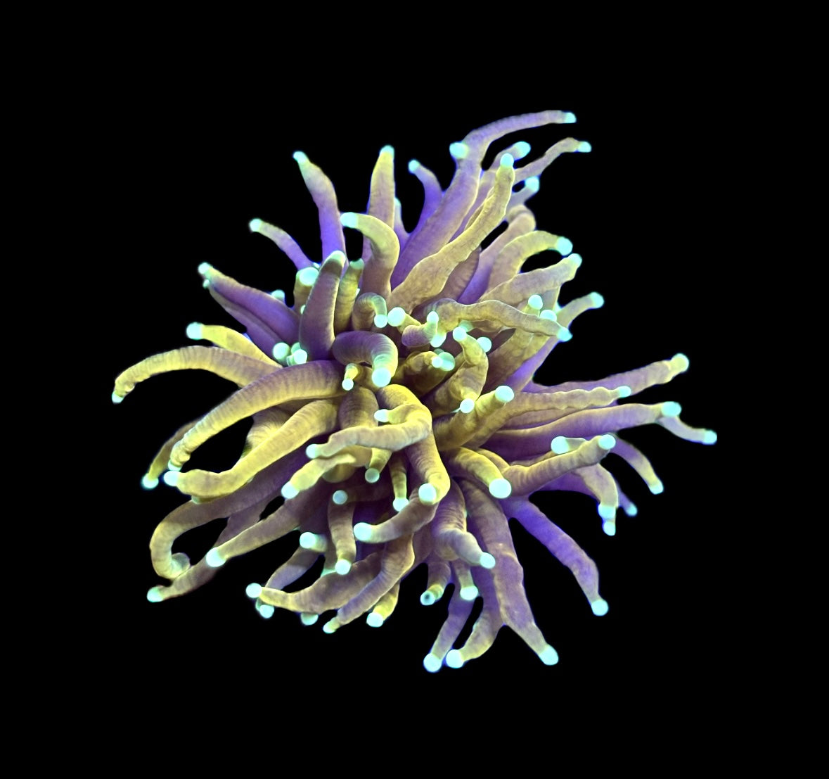 Nice! This beautiful single head Orange Peel Torch features a purple base that slowly transitions to a gold stems with teal tips! In higher light the gold will become brighter while in lower lighting the gold may fade.