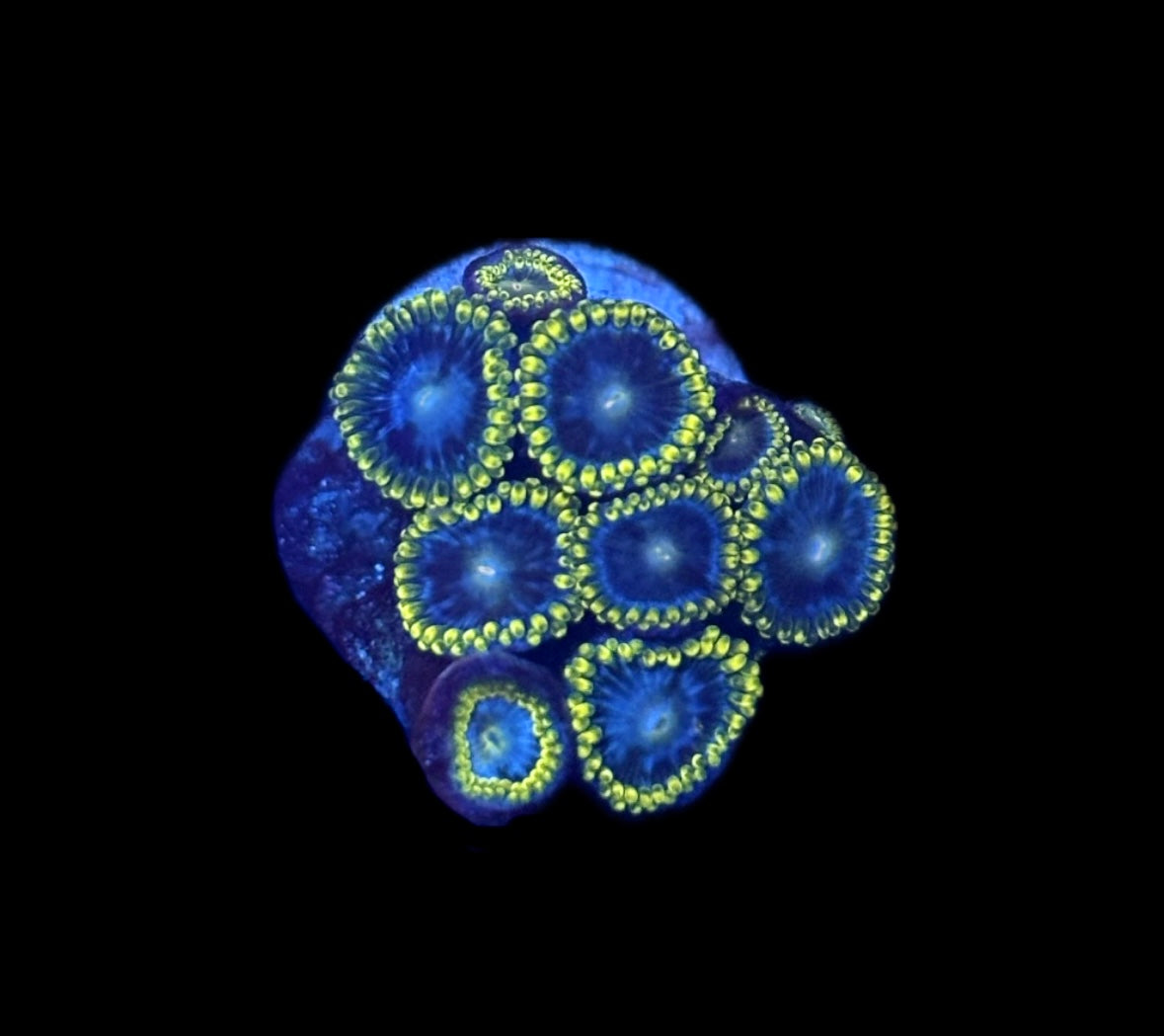 WYSIWYG Smurfette Zoanthid Frag, approximately 10 polyps.
